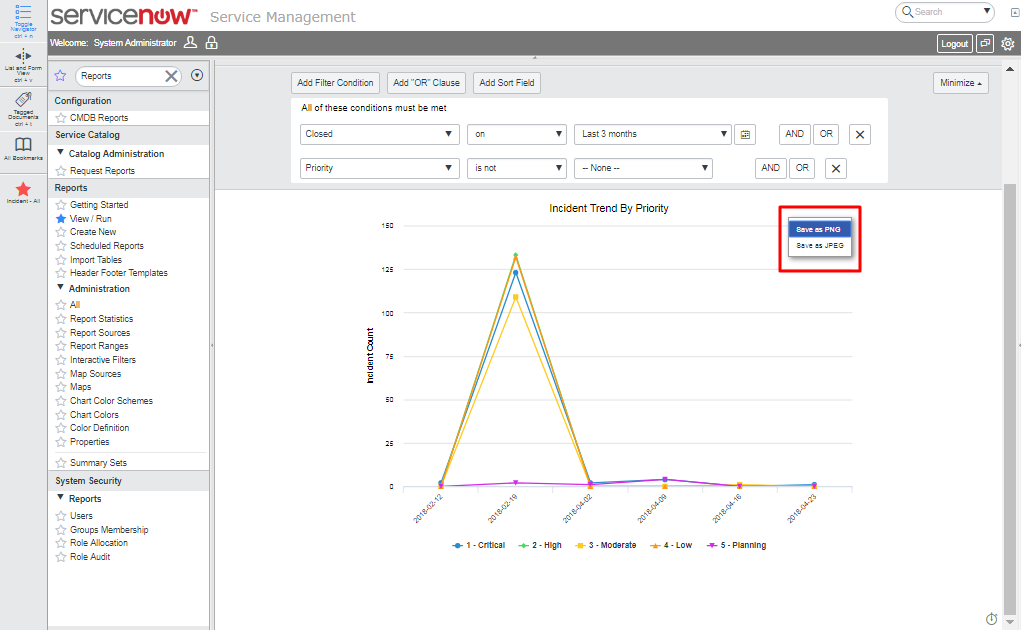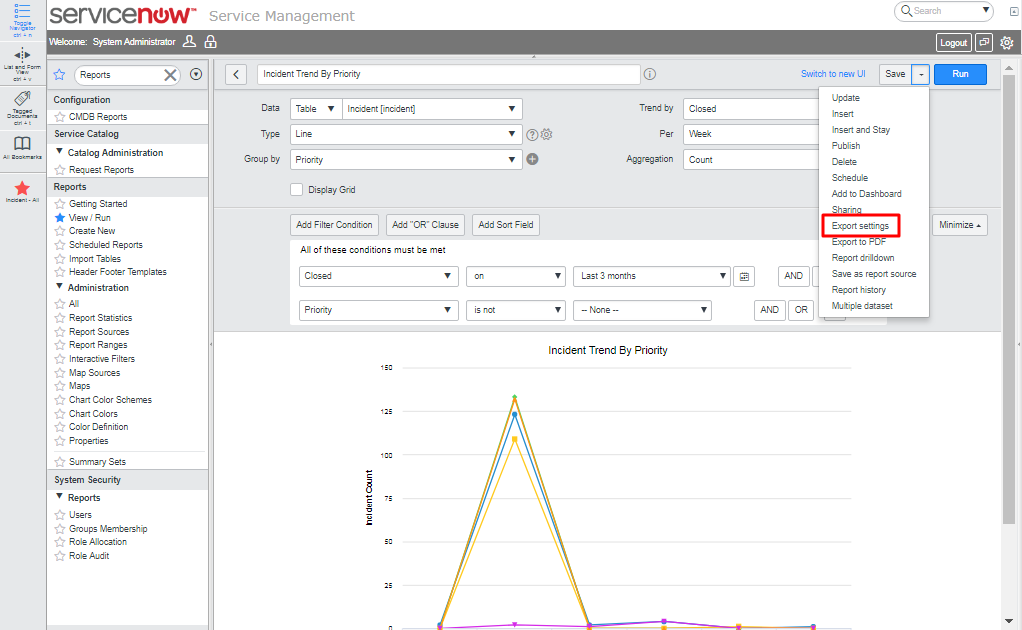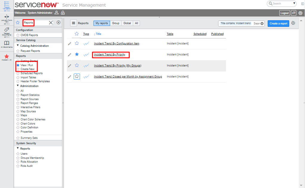 2. Select a report (for demonstration, ‘Incident Trend by Priority’ is selected here).