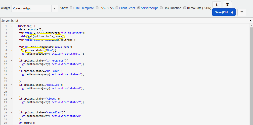 - Select the widget for which creating the options schema by navigate to Service Portal> widgets.