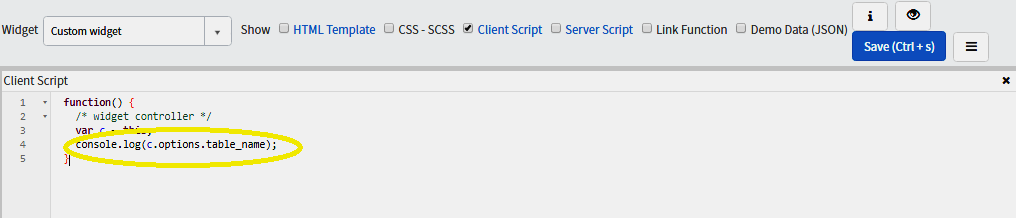 - After saving, when opening the option schema of that widget in the portal, one can see that their custom fields will appear in the option schema. Likewise, one can create more complex option schema for any widget when required including additional customizations to the field through UI Policy, client Scripts, Script Includes etc.
